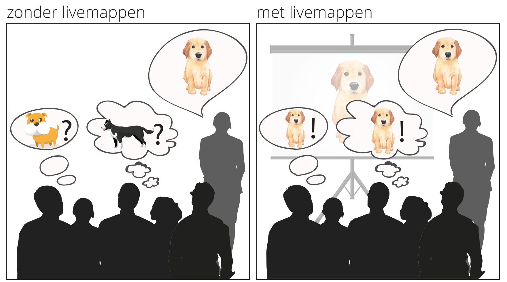 Livemappen zorgt ervoor dat er minder tijd nodig is voor een bijeenkomst en zelf minder bijeenkomsten nodig zijn. Voordelen die het Livemappen oplevert zijn onder andere;- Deelnemers voelen zich meer gehoord