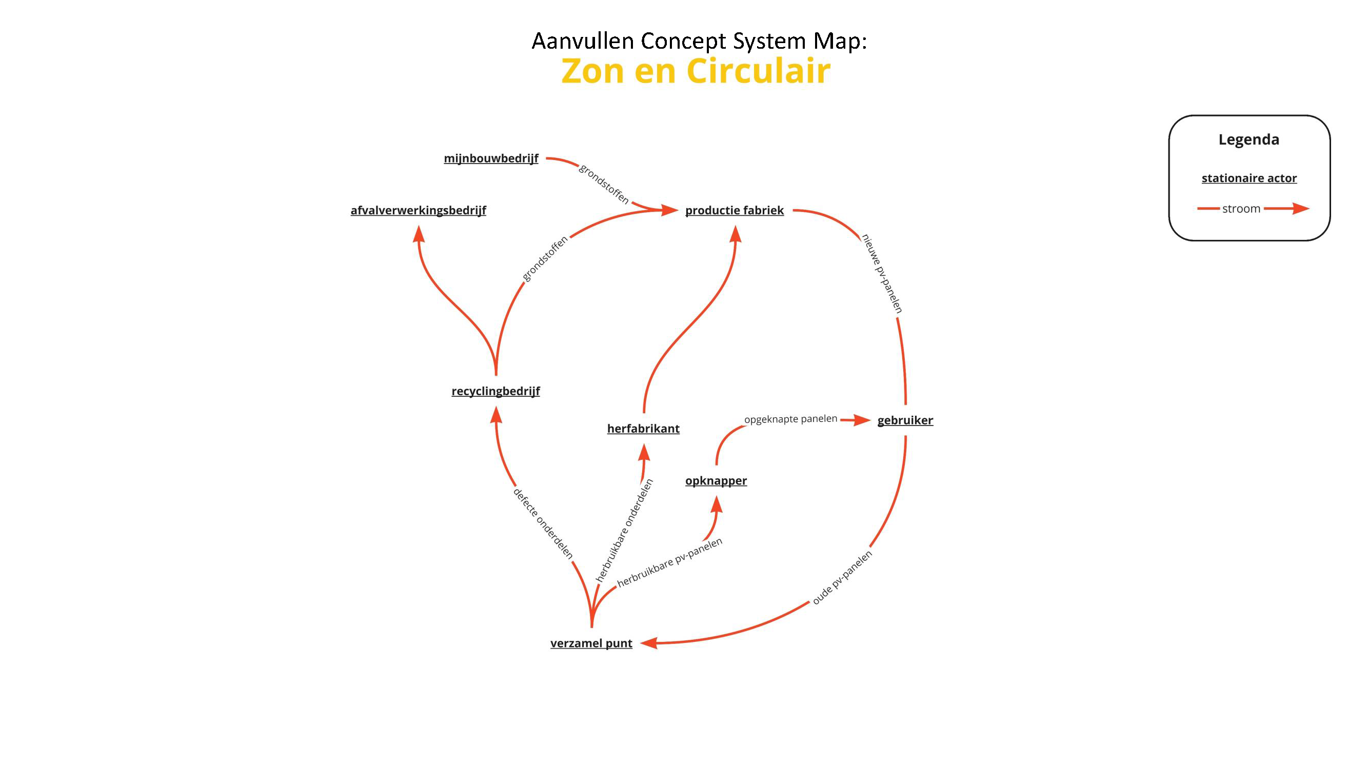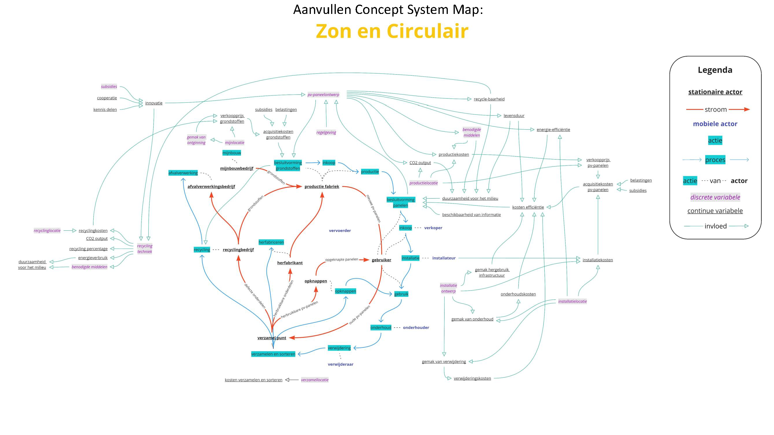 Een mooi voorbeeld hiervan is een System Map die we hebben gemaakt met verschillende belanghebbenden die nader kijken naar het systeem voor het recyclen van zonnepanelen en uitdagingen aanpakken, zoals het minimaliseren van het risico op schade aan het milieu. Klik op de afbeeldingen hieronder om te zien hoe we de systeemkaart in drie stappen hebben opgebouwd.