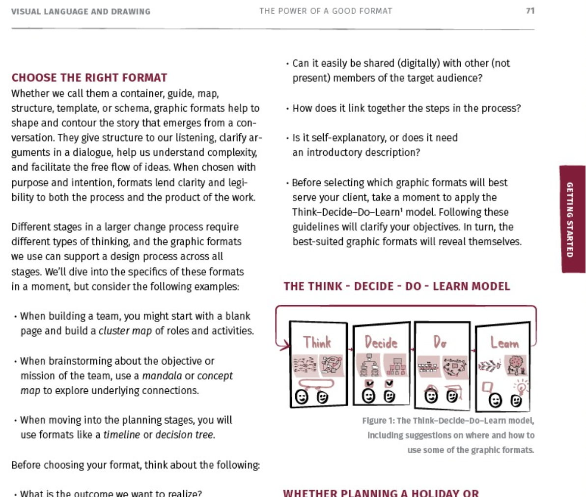 De verhalen in dit boek gaan dieper dan het beschrijven van de visuals en hoe je ze kunt toepassen. Doorgewinterde beoefenaars onderzoeken hoe ze beter kunnen luisteren, hoe ze het verhaal in een bijeenkomst kunnen vastleggen en visualiseren, hoe ze een diepere dialoog kunnen aanmoedigen en ondersteunen, welke beeldtaal te gebruiken, hoe ze sterke en veerkrachtige teams kunnen bouwen … allemaal door de kracht van (soms eenvoudige) visuals en bekwame facilitatie.